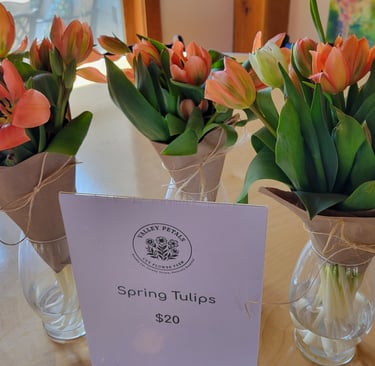 Valley Petals was started by us- Sarah and Dave, just outside of Harrisonburg in 2025. We both shared a long-time passion for growing flowers and and decided to get our hands dirty! We now grow over 60 different types of flowers on our 1-acre property. We are proud to be a local option for our community and can't wait to meet you!